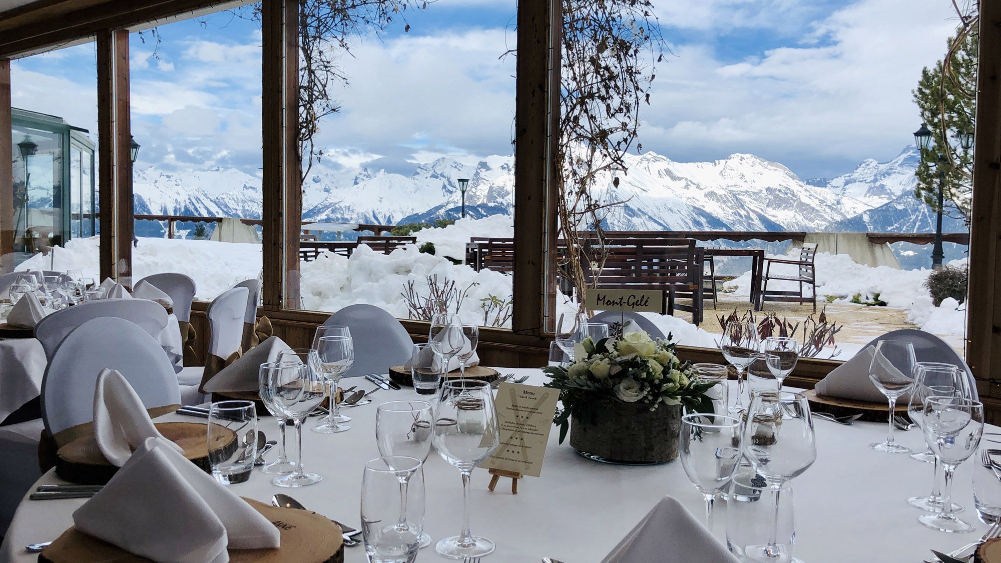 Lieu de réception : Nos trois salons, modulables et pouvant accueillir jusqu’à 150 personnes, sont à votre disposition pour créer l’événement de vos rêves. Profitez également de notre grande terrasse offrant une vue imprenable sur la vallée, idéale pour un cocktail de bienvenue ou même pour une cérémonie en plein air. L'architecture traditionnelle de notre hôtel, typique de la région valaisanne, apporte une touche authentique et chaleureuse, au cœur des majestueuses Alpes suisses. Un cadre unique pour une célébration inoubliable.